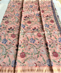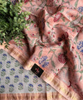 Pure Chanderi saree comes with golden zari maheswari border with printed pallu and running blouse pc