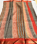 Pure Chanderi saree comes with golden zari maheswari border with printed pallu and running blouse pc