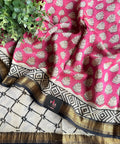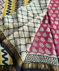 Pure Chanderi saree comes with golden zari maheswari border with printed pallu and running blouse pc