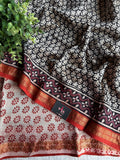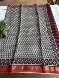 Ajrakh printed Pure Chanderi saree comes with golden zari maheswari border with printed pallu and running blouse pc