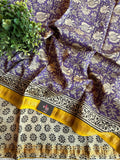 Hand Block Printed Pure Chanderi saree comes with golden zari maheswari border with printed pallu and running blouse pc
