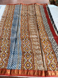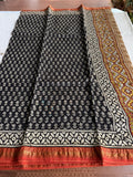 Pure Chanderi saree comes with golden zari maheswari border with printed pallu and running blouse pc