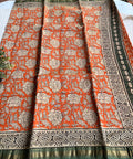 Pure Chanderi saree comes with golden zari maheswari border with printed pallu and running blouse pc