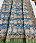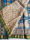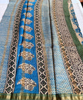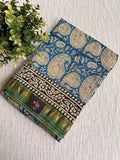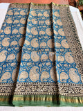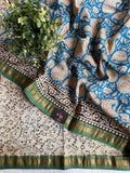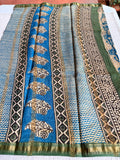 Pure Chanderi saree comes with golden zari maheswari border with printed pallu and running blouse pc