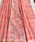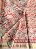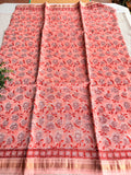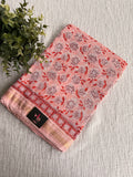 Pure Chanderi saree comes with golden zari maheswari border with printed pallu and running blouse pc
