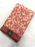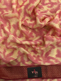 pink and cream brasso chiffon saree with attached border comes with running blouse pc