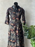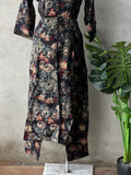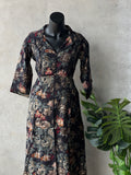 Collared neck, 3/4th sleeves printed modal silk top, printed modal silk elastic waist pant