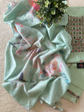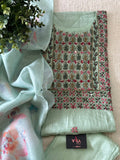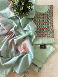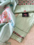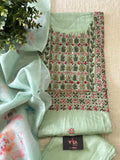 French knot neck embroidery work dola silk ready kurti, elastic waist ready pant comes with printed chanderi dupatta