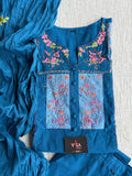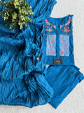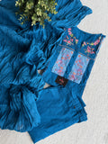 Colourful neck embroidery pure cotton top, elastic waist pure cotton pant comes with crush cotton dupatta