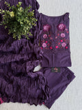 Neck hand emb work cotton suit set-Purple