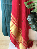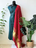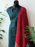 Contrast mirror work silk Dupatta with silk cotton top