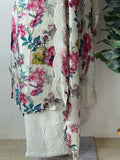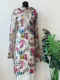 Floral printed muslin top, plain santoon bottom comes with scallop border muslin dupatta