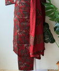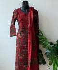 Hakoba neck patch work printed cotton top , printed cotton pant comes with applique work heavy dupatta