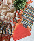Premium quality Printed chanderi top with weaving zari border, plain cotton bottom comes with printed chanderi dupatta