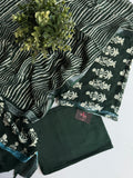 Printed cotton linen suit material-Dark green