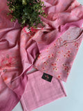 Floral Printed linen cotton top and plain cotton bottom comes with printed silk cotton dupatta