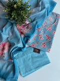Floral Printed linen cotton top and plain cotton bottom comes with printed silk cotton dupatta