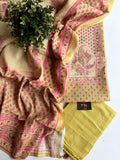 Printed silk cotton top and plain santoon bottom comes with printed silk cotton dupatta