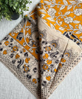 Experience timeless sophistication with this exquisite Kalamkari cotton saree, fashioned from superior quality fabric. The garment features intricately printed Kalamkari patterns throughout, with a particularly ornate printed pallu that exemplifies traditional artisanal mastery. Complete with a matching blouse piece, this saree represents a discerning investment in authentic textile heritage and uncompromising quality standards.