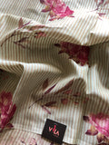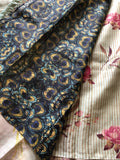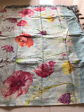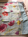 Pale blue Tussar ghicha striped silk saree with floral printed all over the saree with zari border and pallu comes with peocock feather printed blouse pc as shown