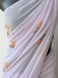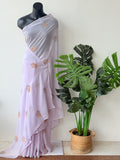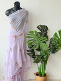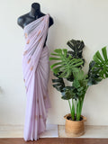 Lavender maple leaf emb georgette saree
