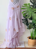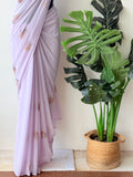 Lavender maple leaf emb georgette saree comes with embroidered blouse pc