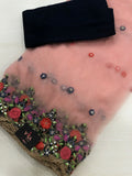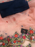 Peach net scallop embroidery border saree with raw silk blouse pc