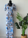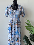 Smocking Flat front Premium quality printed Rayon full length, half sleeve nighty with front open buttons