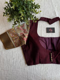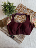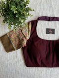 Size 36 - Halter neck kalamkari sleeves maroon cotton blouse comes with kalamkari pure cotton saree