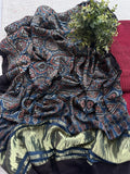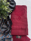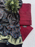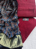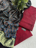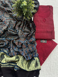 Kantha work silk cotton top, plain cotton bottom with ajrakh printed modal silk dupatta