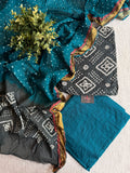 Beautiful Bhandej hand dyed pure cotton top, printed cotton bottom comes with cotton dupatta