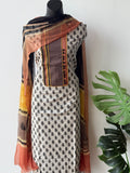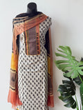 Designer Potli neck printed cotton daman patch work pure cotton top, printed cotton bottom comes with printed chiffon dupatta border