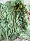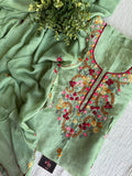 French knot Hand embroidered Russian silk top, plain santoon bottom comes with hand emb georgette dupatta