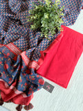 Handloom cotton and bottom with block printed kota dupatta
