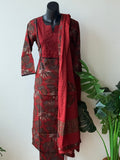 Hakoba neck patch work printed cotton top , printed cotton pant comes with applique work heavy dupatta