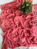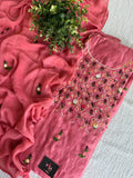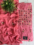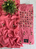 Mirror work Hand embroidered Russian silk top, plain santoon bottom comes with hand emb georgette dupatta