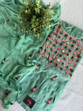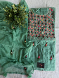 Mirror work Hand embroidered Russian silk top, plain santoon bottom comes with hand emb georgette dupatta