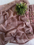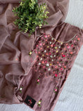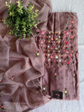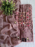 Mirror work Hand embroidered Russian silk top, plain santoon bottom comes with hand emb organza dupatta