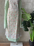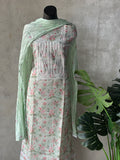 Neck embroidery printed linen cotton top, plain cotton bottom comes with embroidery crush cotton dupatta