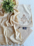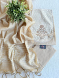 Neck patch work chanderi top, plain cotton bottom comes with zari weaving chanderi dupatta