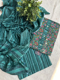 Hand emb neck patch work printed cotton top, printed cotton bottom comes with printed soft cotton dupatta