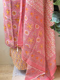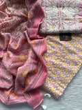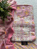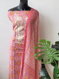 Thread work embroidery printed mul cotton top, printed cotton bottom with printed pure cotton dupatta