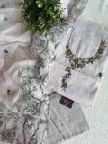 Hand embroidery premium quality organza top, plain santoon bottom comes with printed organza dupatta