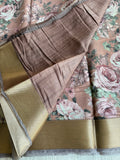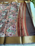 Elevate your wardrobe with this vintage floral printed viscose saree featuring a shimmering zari border. Complete with a matching blouse piece, this saree offers a seamless blend of traditional elegance and modern comfort. Its soft, breathable fabric ensures all-day ease, while the intricate floral design and lustrous border make you stand out effortlessly at any occasion. Don’t miss the chance to own a timeless piece that complements your graceful style perfectly.