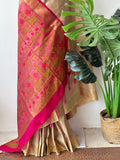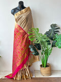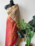Golden Zari border plain dupion silk saree with contrast weaving pallu comes with plain blouse pc