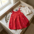 Red Checked Jamdani cotton kids frock