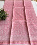 Pure Chanderi saree comes with golden zari maheswari border with printed pallu and running blouse pc