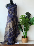 Batik printed kantha work raw silk saree