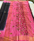 Shaded bhagalpur zari checked saree comes with emb pallu and plain blouse pc