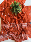 Burnt orange pure cotton top, elastic waist printed cotton pant comes with printed cotton dupatta.